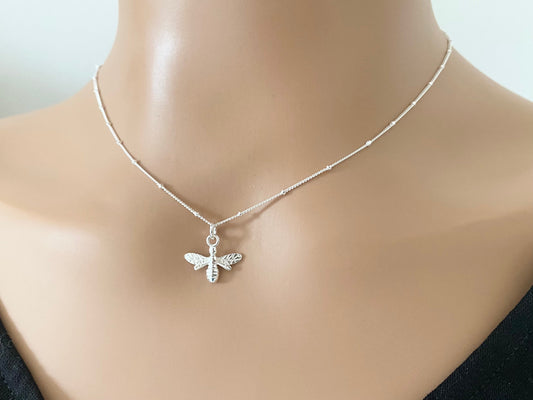 Sterling Silver Bee Necklace on a Satellite Chain