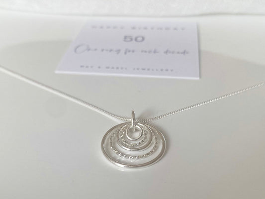 50th Birthday Sterling Silver Necklace with Twisted Rings