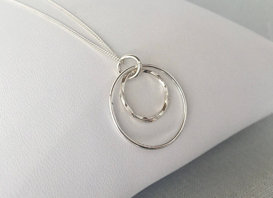 Sterling Silver Two Circles Necklace on Satellite Chain