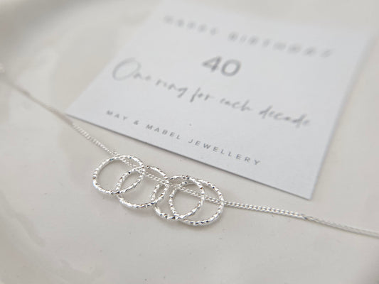 40th Birthday Sterling Silver Necklace with Diamond Cut Rings