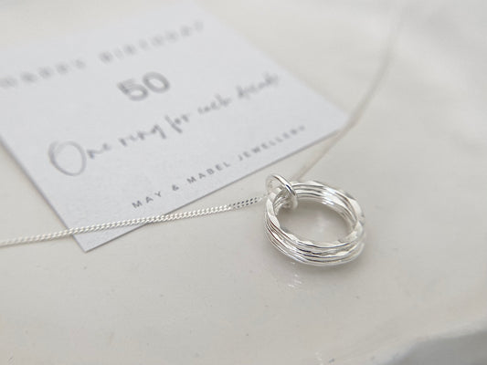 50th Birthday Classic Sterling Silver Necklace for Five Decades