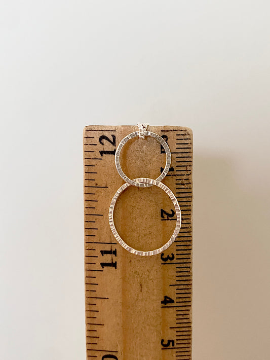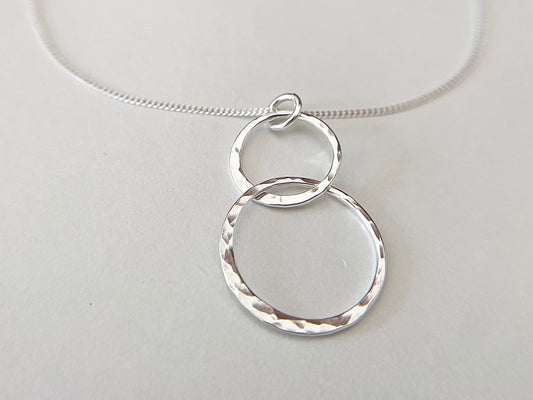 Silver Linked Double Circle Necklace with Line Texture