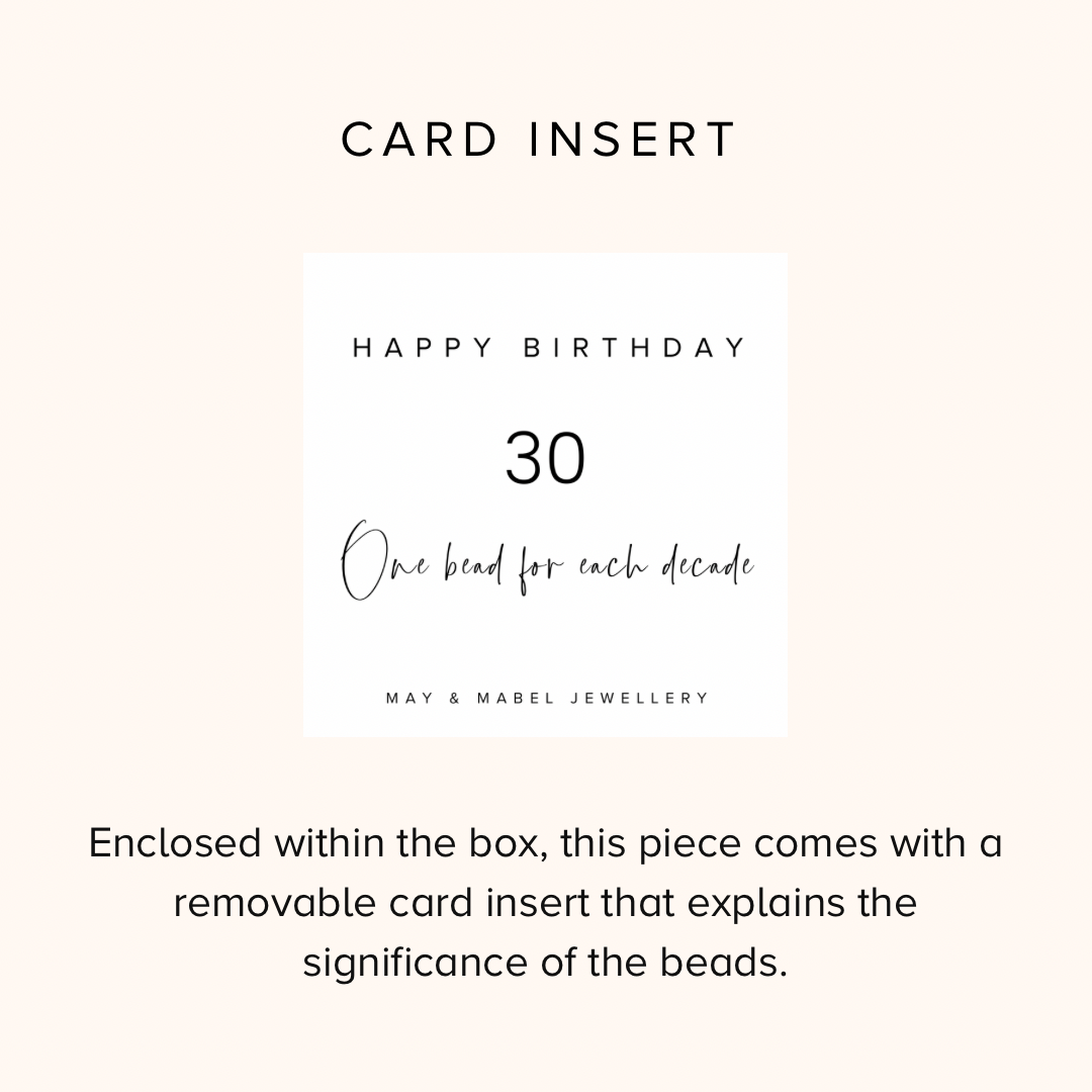 Enclosed within the box, this piece comes with a removable card insert that explains the significance of the beads.