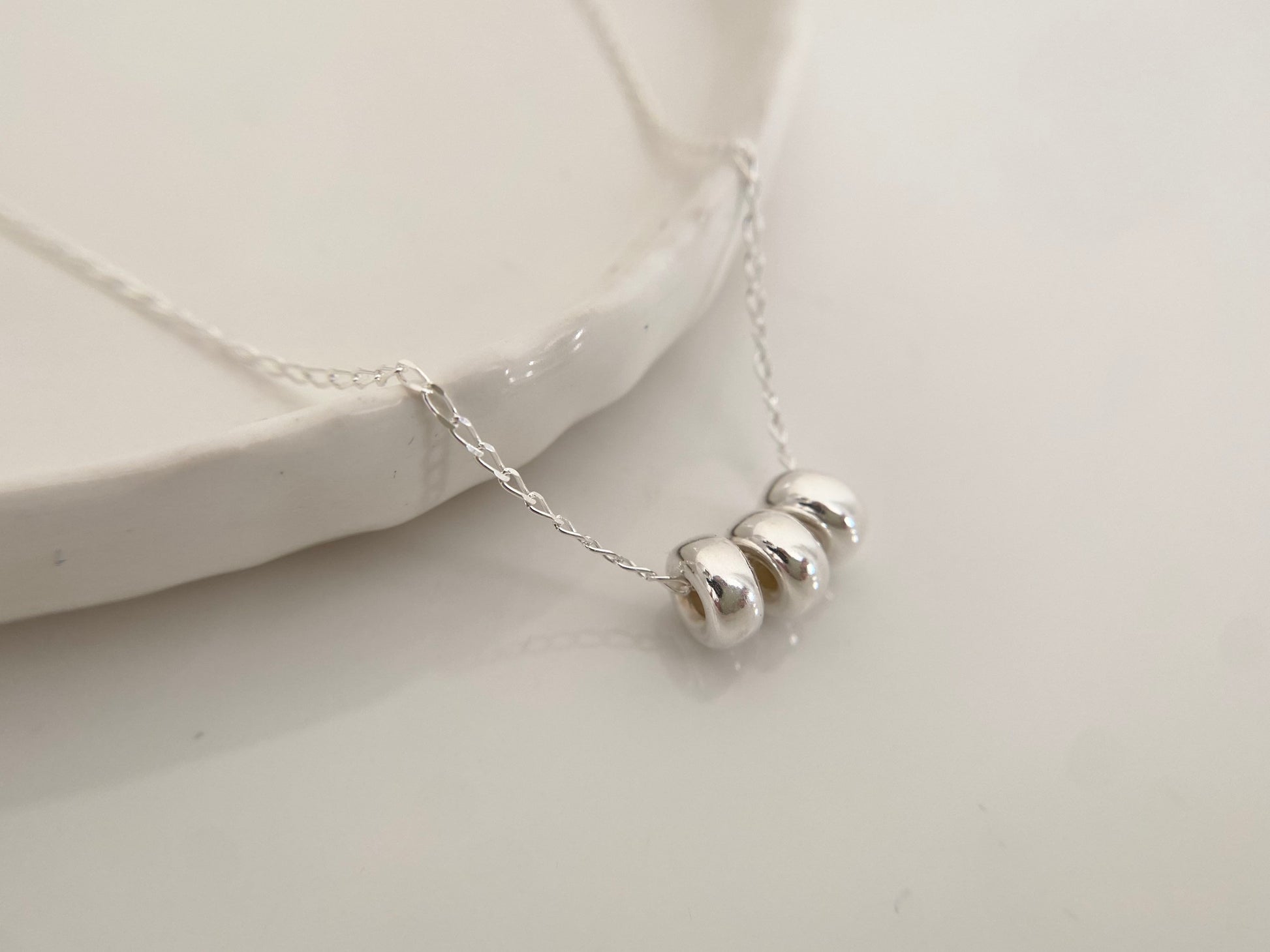 Featuring three beads for three decades, this sterling silver 30th birthday necklace has three smooth finish sterling silver rondelle beads on a delicate sterling silver diamond cut curb chain. A truly thoughtful and special 30th birthday gift.