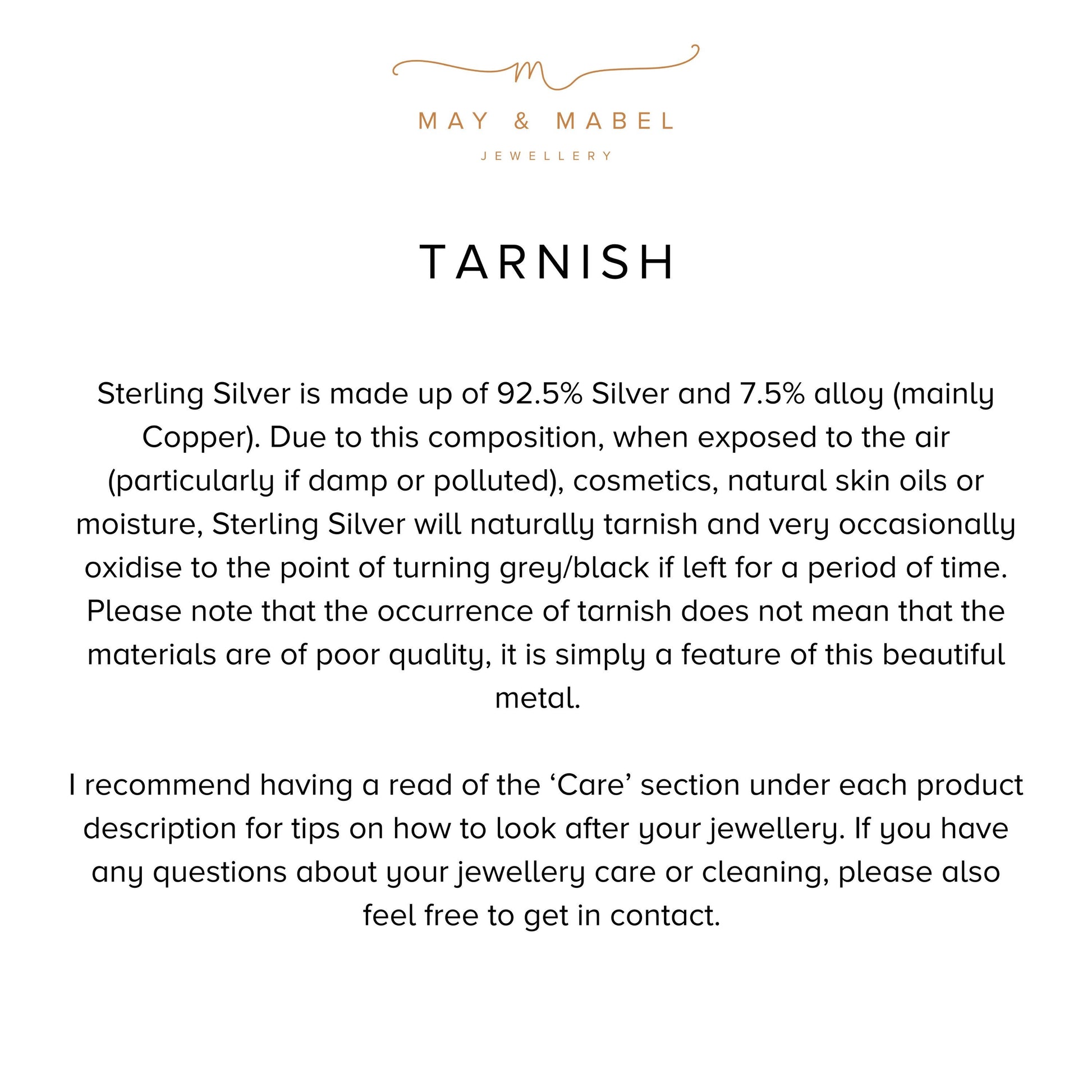 Your item will be packaged in a May & Mabel gift box. Boxes will be anthracite grey or white in colour and are either stickered or embossed with a May & Mabel logo, subject to availability. Enclosed in each box will be an anti-tarnish paper strip to help prevent discolouration.