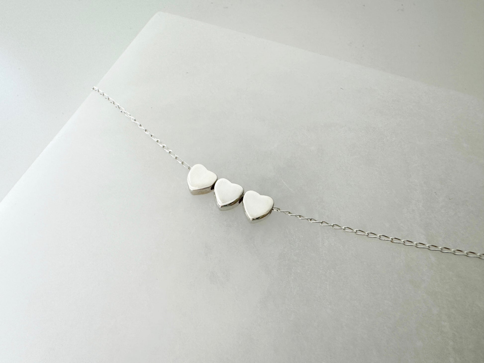 The silver heart beads measure 6mm and are threaded onto a delicate sterling silver diamond cut curb chain.