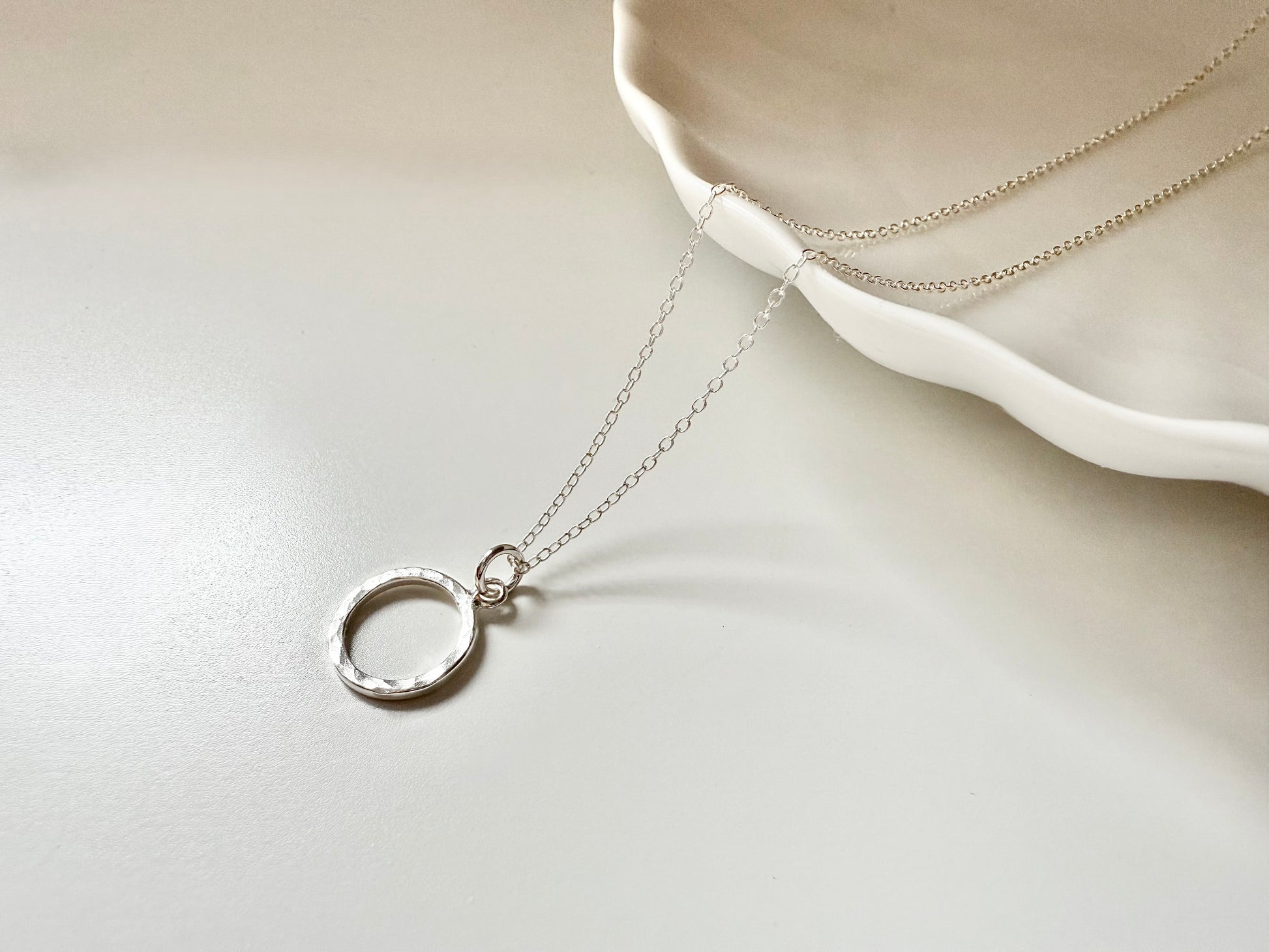 Sterling Silver Ring Pendant Necklace, Hammer Texture