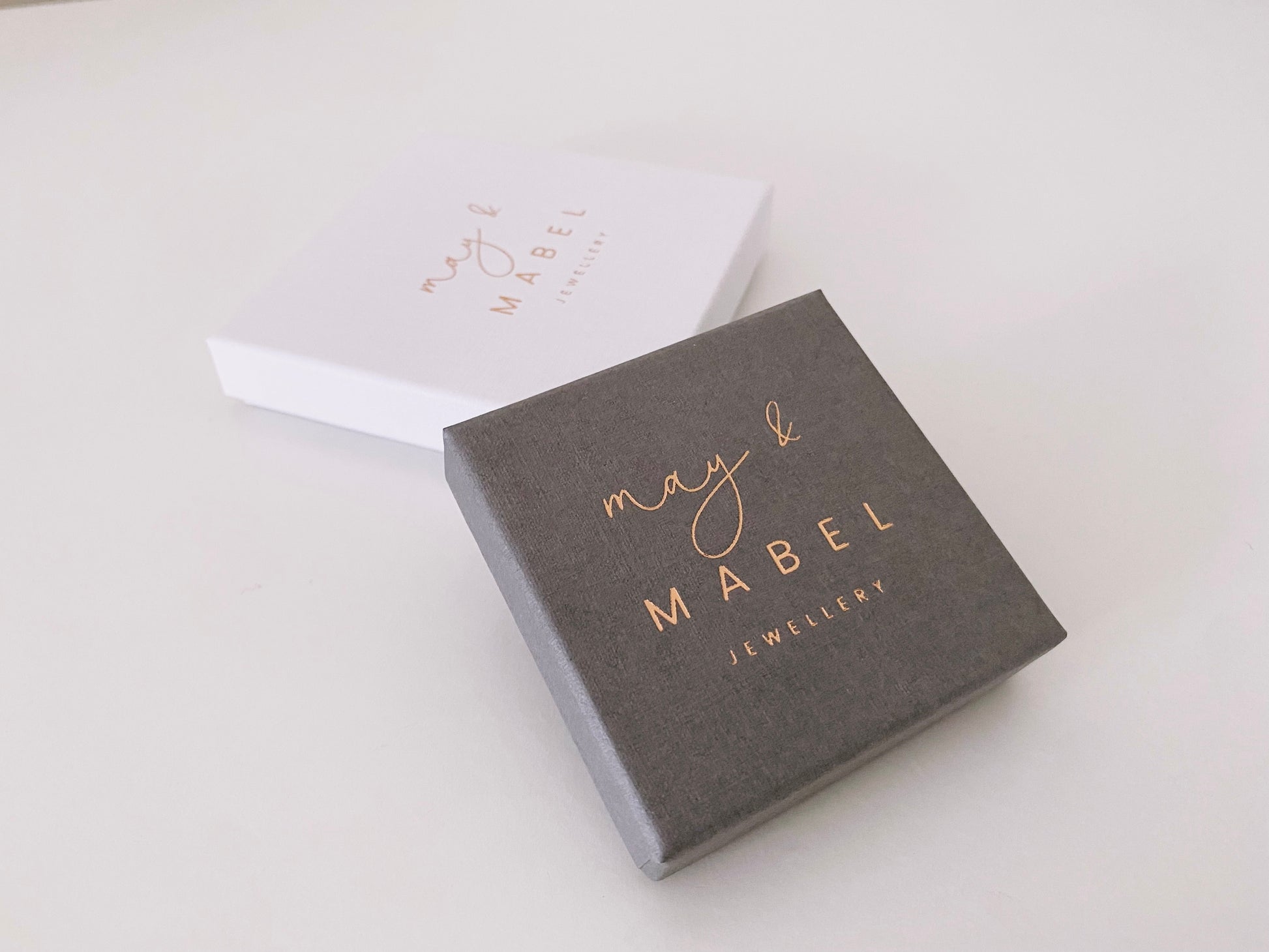 Your item will be packaged in a May & Mabel gift box. Boxes will be anthracite grey or white in colour and are either stickered or embossed with a May & Mabel logo, subject to availability. Enclosed in each box will be an anti-tarnish paper strip to help prevent discolouration.